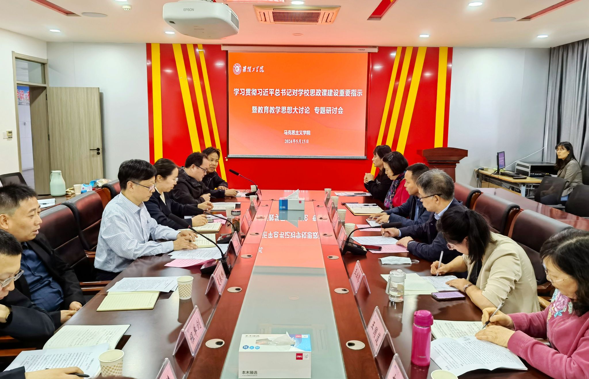 5月15日上午,70net永乐高召开学习贯彻习近平总书记对学校思政课建设重要指示精神暨公司产品思想大讨论专题研讨会。公司党委书记常绿出席会议并讲话。教务处、教学质量监控与评估处等部门负责人,公司领导班子成员、党支部书记、教研室主任和教师代表参加会议。